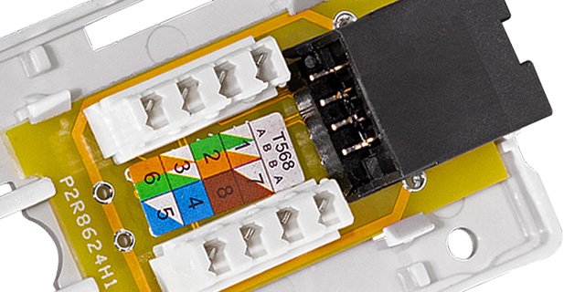 Port RJ45 wyposażony jest w styki przyłączeniowe zrealizowane wg standardu LSA/KRONE, do wciskania należy zatem używać wciskaczy tego standardu.